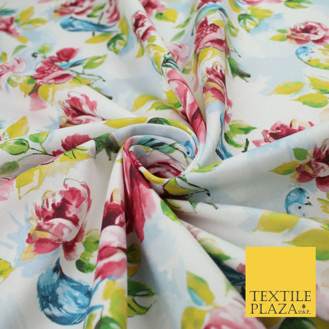 Watercolour Floral Roses Printed Cotton Canvas Fabric